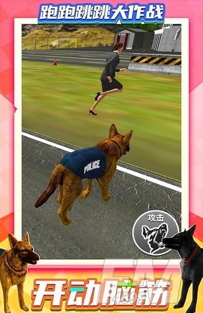 跑跑跳跳大作战是一款非常好玩的模拟经营类游戏,在这款游戏当中玩家们将拥有一只受过专业训练的军犬,为了打击犯罪分子,所有的玩家都必须要带领着自己的军犬在大街上进行巡逻,你可以带领上自己的军犬,到各种地方来进行检查,如果发现有违禁的物品的话,那么军犬就会狂叫,你也可以对嫌疑人进行逮捕,完成自己的任务。