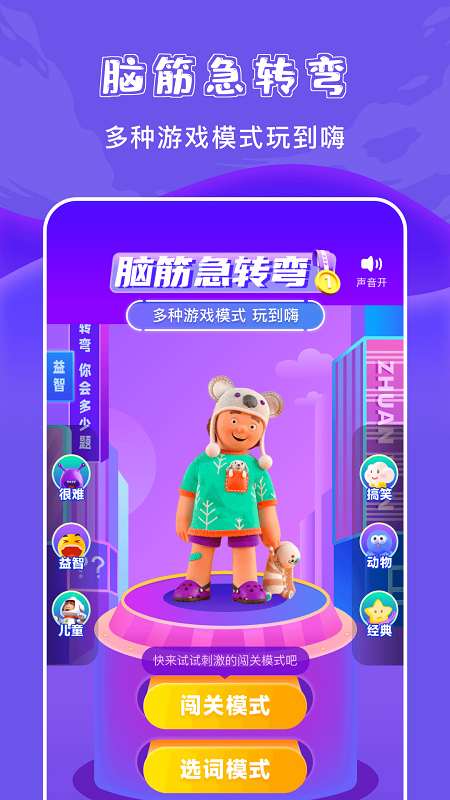 就算是答错题的情况下也不用担心,每道题目都会显示正确答案,这样也能积累更多的经验,在下次遇到这个题目的时候,就不用担心不会了,让每个用户都能玩到嗨,有选词模式和闯关模式都能自由选择。