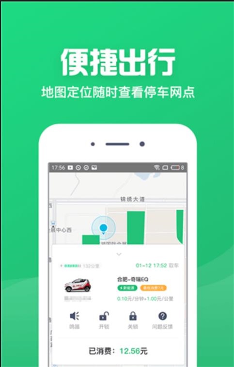 4、灵活使用:手机app随时寻找附近可租车辆,预定使用后便可取车,灵活方便。
