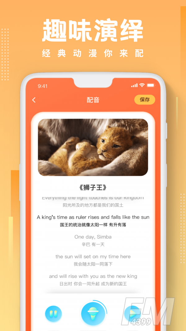 英语一直都是我们一个国际化语言,学习英语要从小抓起,一起来加入到这款英语配音APP中,这款软件不像一个普通的英语软件一样枯燥和无聊,你可以在娱乐中学习的更多的英语知识和语法,想象自己就是电影场景中你应该如何配音呢?以这种方式来学习英语更加有趣。